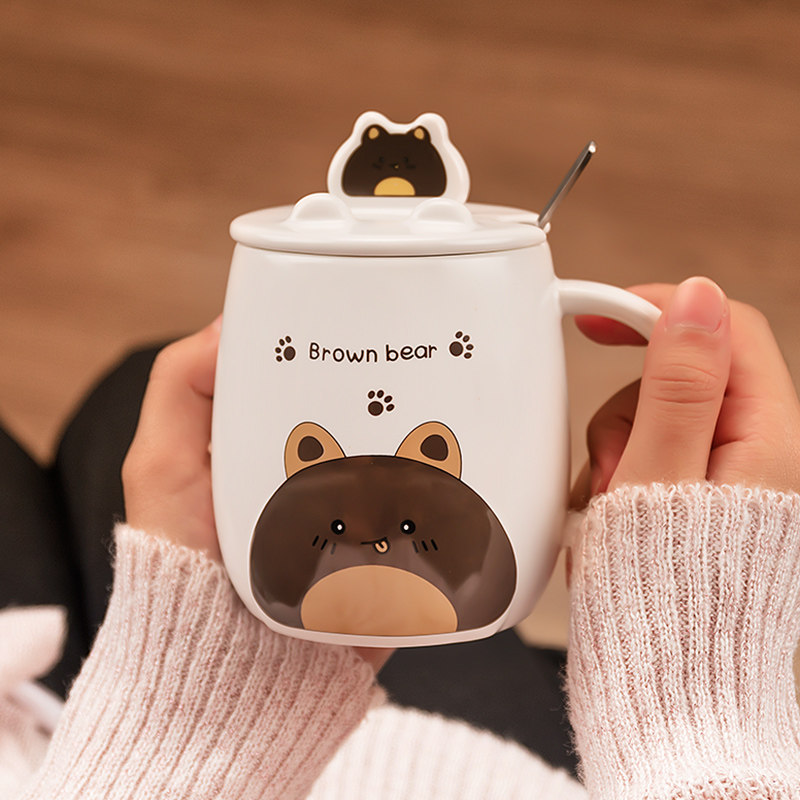 创意可爱马克杯卡通水杯手机支架陶瓷杯带盖勺少女杯子牛奶早餐杯热门设计联盟服务商