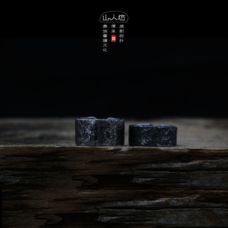 山人坊999纯银指环原创手工设计银饰 民族风捶揲定制岩石肌理戒指热门设计联盟服务商